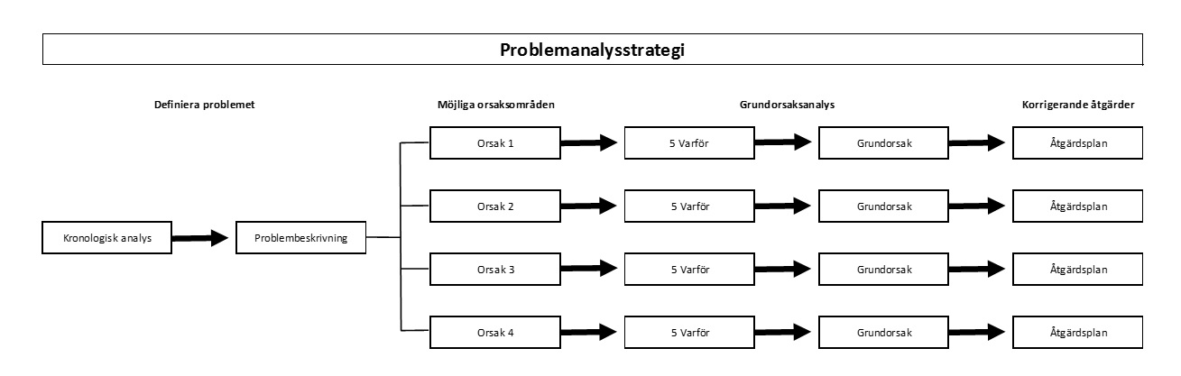 Vår erfarenhet säger att många organisationer har alltför stort fokus på kortsiktiga lösningar istället för att arbeta med en uttalad problemanalysstrategi med sammanhållande tekniker.